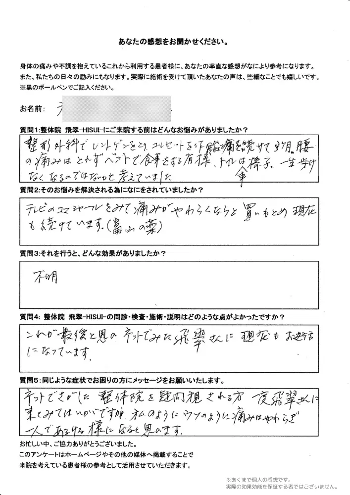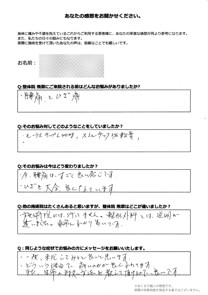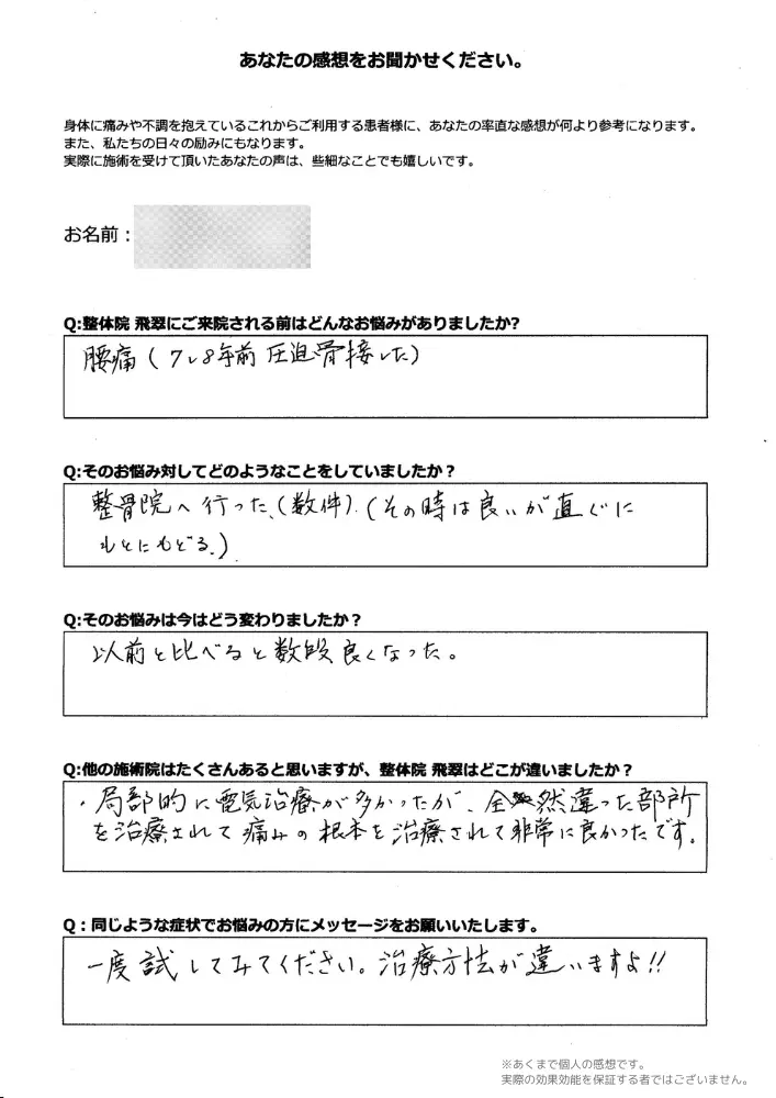 他の施術院はたくさんあると思いますが、整体院 飛翠はどこが違いましたか?